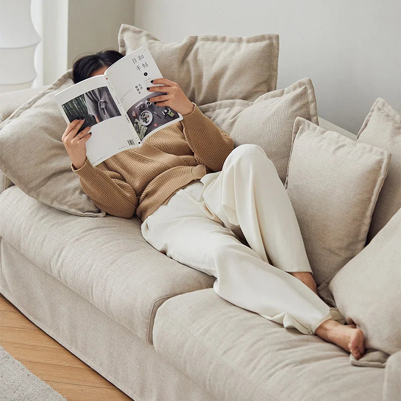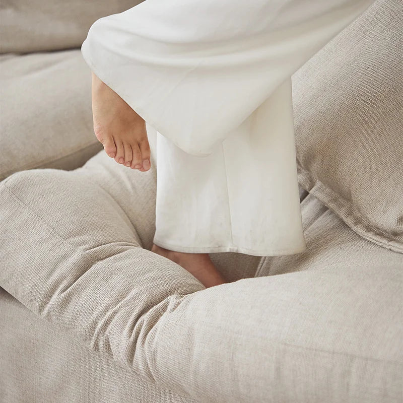 Telaio in legno massello di larice + compensato P2 + molle sinuose a zigzag + schiuma ad alta resilienza + imbottitura in piuma d'oca + cotone PP + imbottitura per tappezzeria + tessuto in mussola + tessuto Moleskine + tessuto antiscivolo + tessuto non tessuto + livellatore in plastica (3 cm) + tappezzeria
